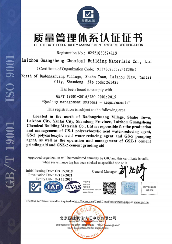 Laizhou Guangsheng Chemical Building Materials Co., Ltd. was established in 2010 with a registered capital of 80 million yuan and a total investment of 15 million yuan. Chemicals and other fields, a chemical enterprise integrating R&D, production, sales and service; the company has a professional technical department and a quality supervision department, a well-equipped laboratory, advanced testing equipment and an after-sales customer service center.
